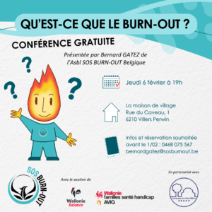 ✨ 𝐂𝐨𝐧𝐟𝐞́𝐫𝐞𝐧𝐜𝐞 « 𝐐𝐮’𝐞𝐬𝐭-𝐜𝐞 𝐪𝐮𝐞 𝐥𝐞 𝐁𝐮𝐫𝐧-𝐨𝐮𝐭 ? » 𝐚𝐯𝐞𝐜 𝐁𝐞𝐫𝐧𝐚𝐫𝐝 𝐆𝐚𝐭𝐞𝐳 de SOS Burn-out Belgique.✨