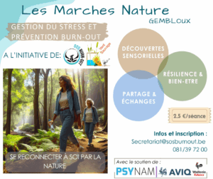 Marchez, respirez, évacuez le stress avec SOS Burn-out & Vent Sauvage à Gembloux.