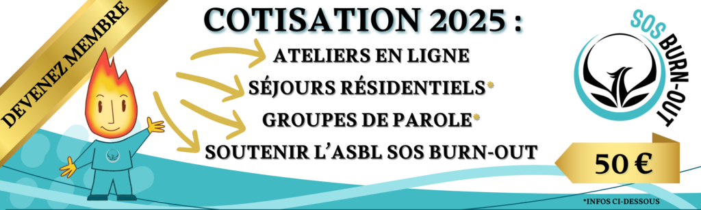 Pour l’année 2025, grâce à une cotisation de 50 €, vous apportez votre soutien à SOS Burn-out et vous devenez un acteur engagé dans la lutte contre le burn-out !