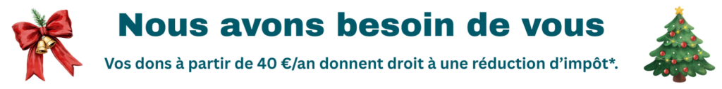 Chaque don, quel qu’en soit le montant, est une aide précieuse pour nous !